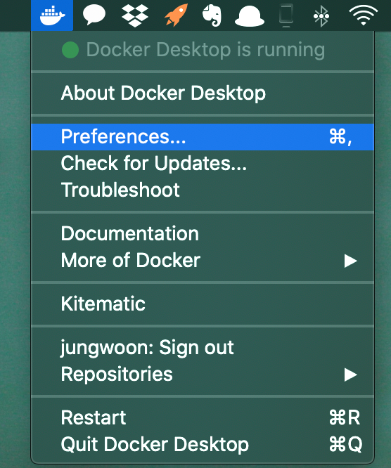 를 설치하도록 하겠습니다. Docker -> Preferences