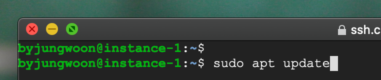 의 터미널을 열고 $ sudo apt update