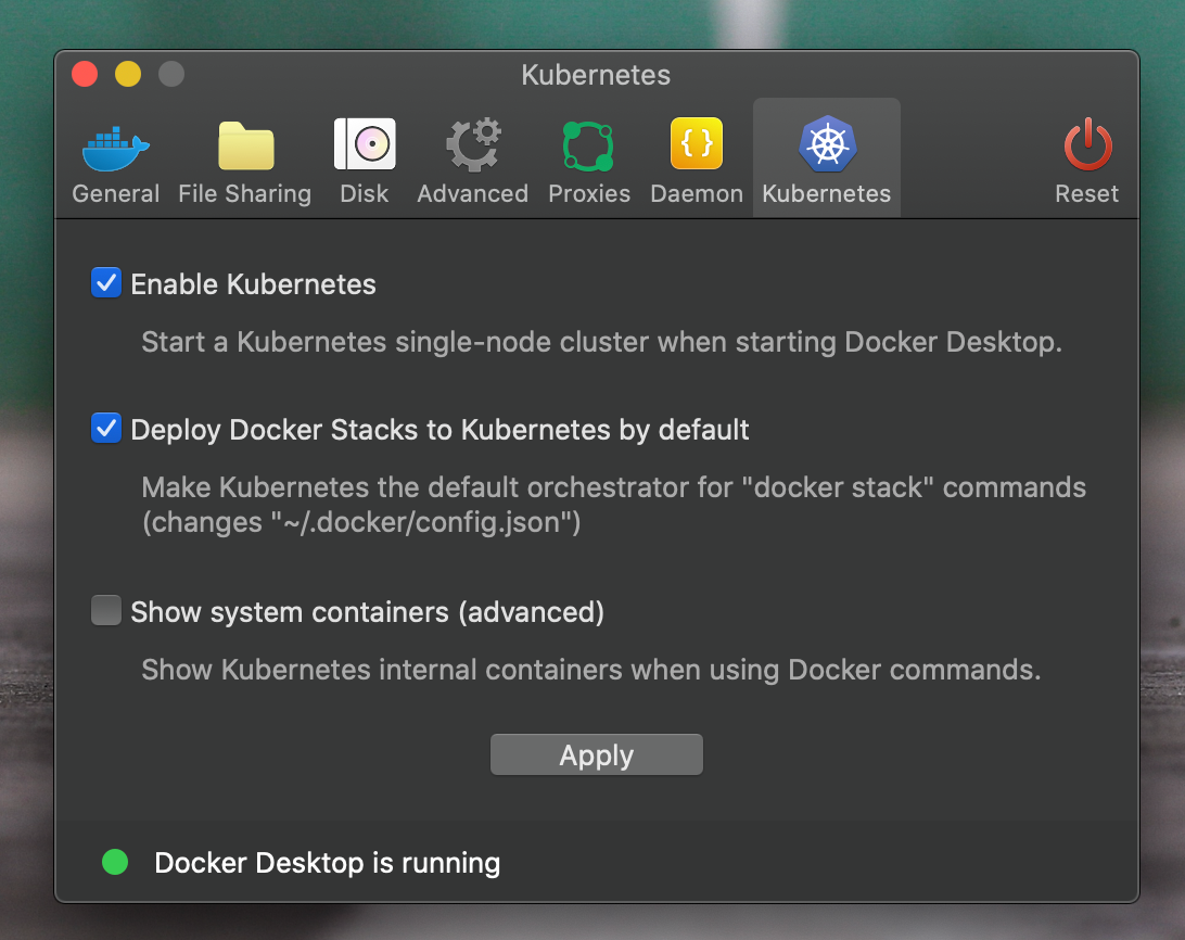 Kubernetes를 선택하고 Enable Kubernetes