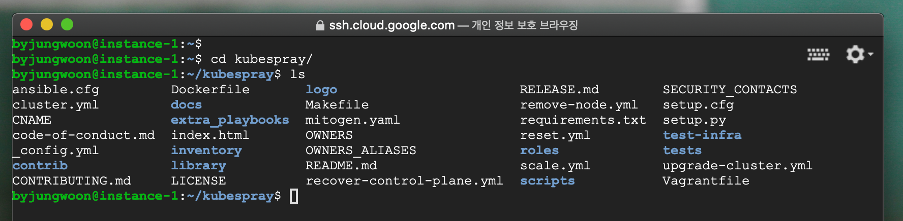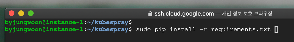 Compute Engine에 Kubespray 를 설치하여 환경 설정을 하도록 하겠습니다.