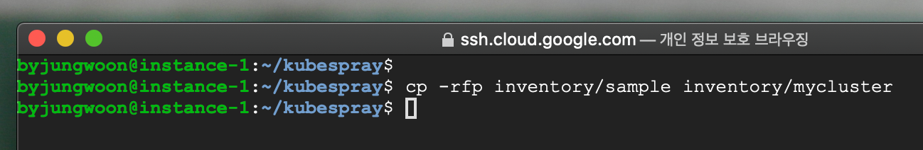 $ cp -rfp inventory/sample inventory/mycluster