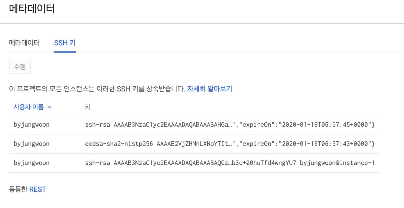 메타데이터 - SSH 키