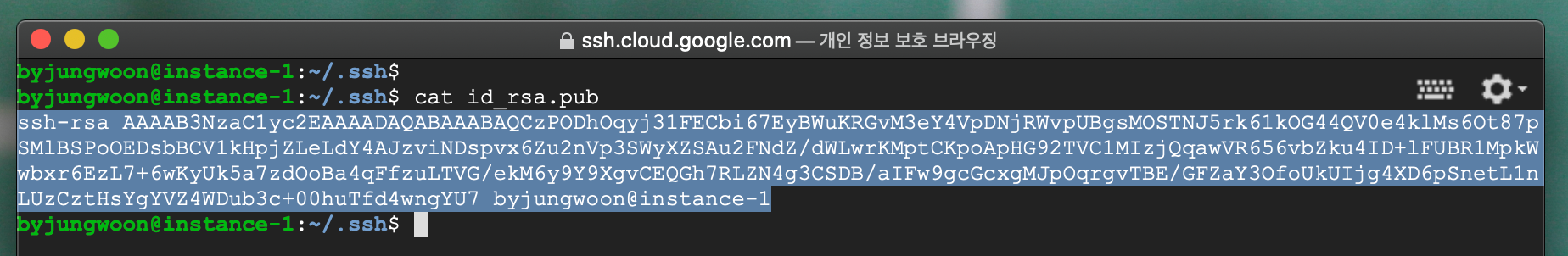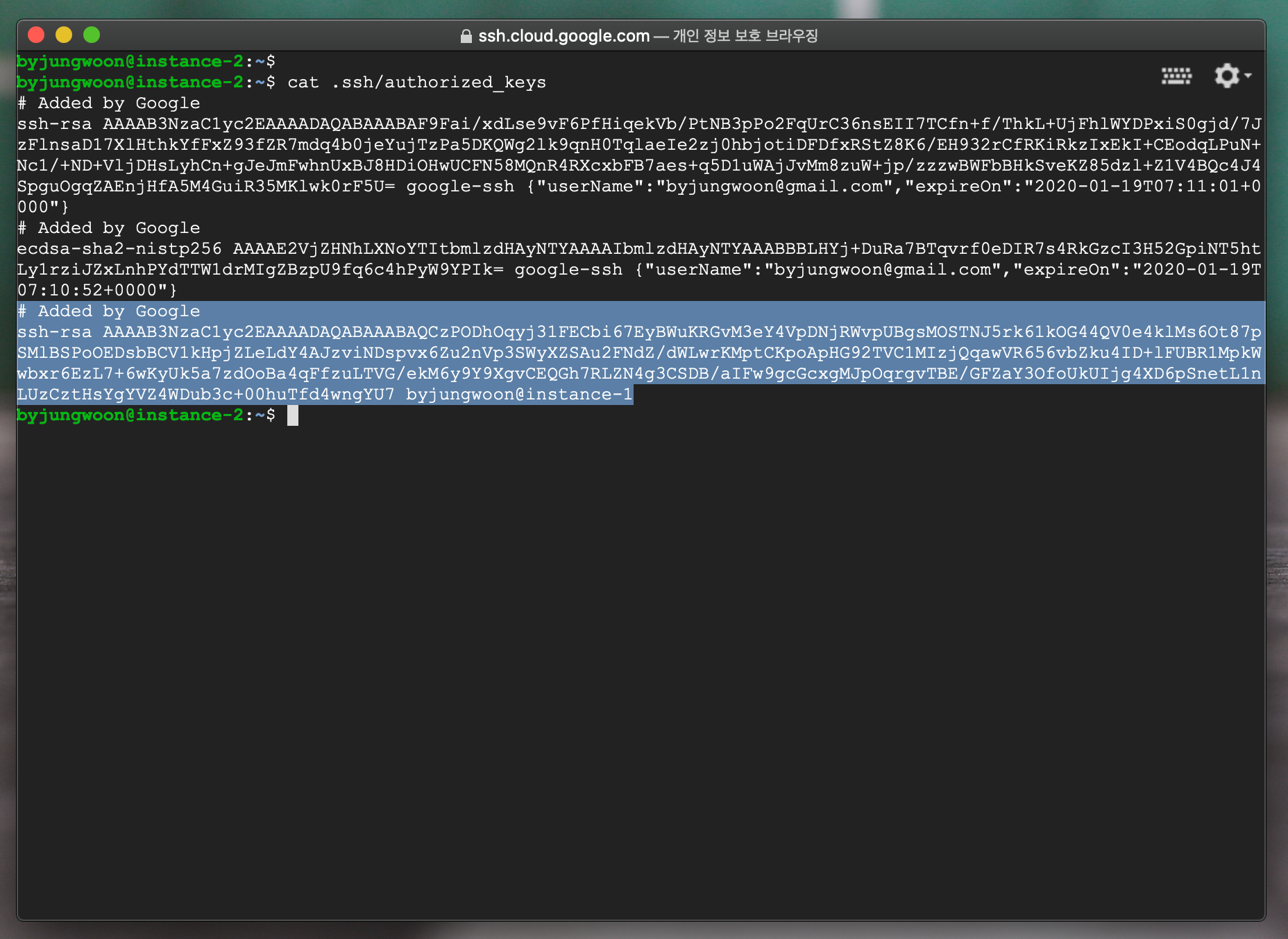터미널에 cat .ssh/authorized_keys