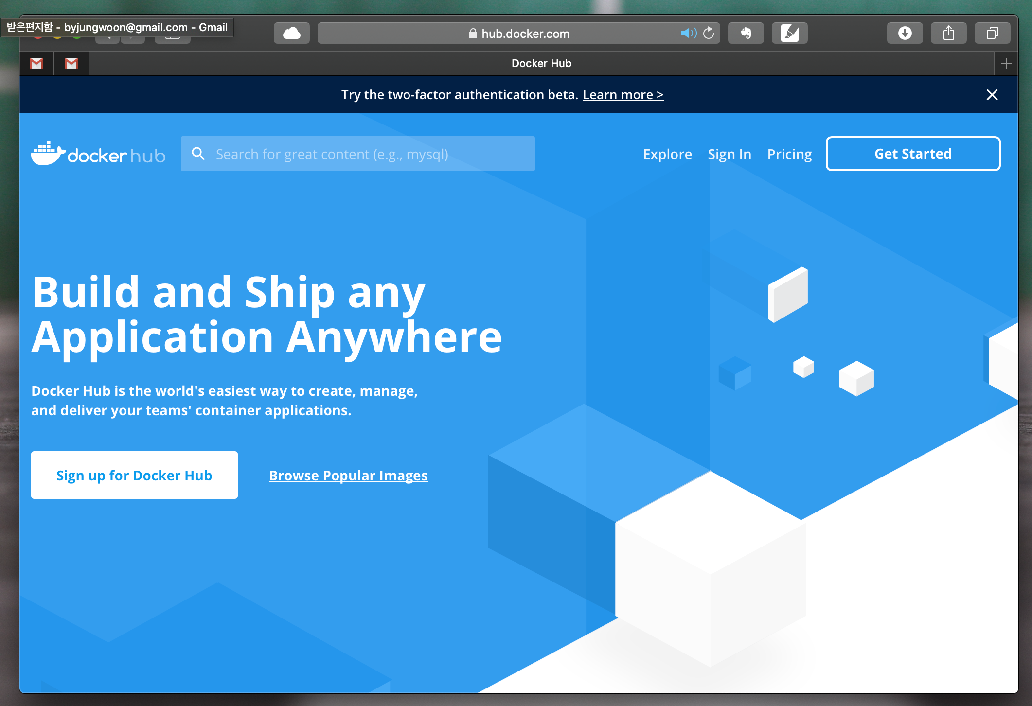먼저 Docker Hub에 들어갑니다. 우측 상단의 Sign In